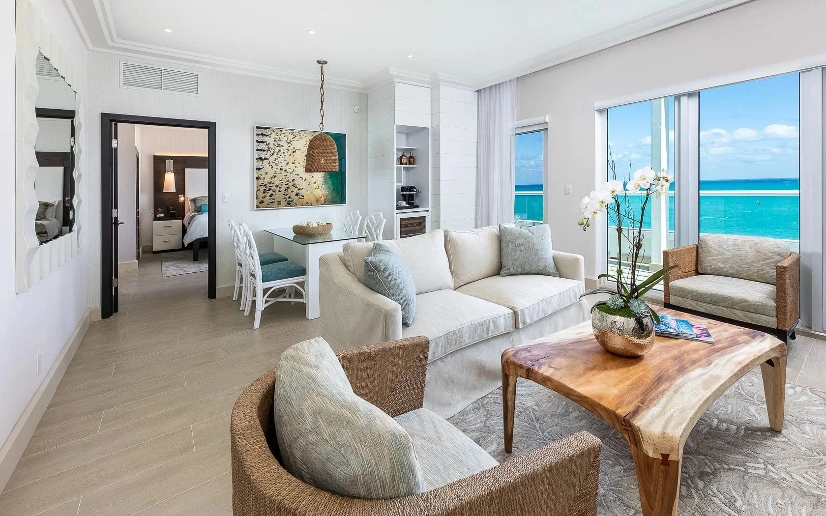 The renovated one- and two-bedroom luxury apartments are among the most spacious accommodations in Miami Beach. Each includes a separate living room, kitchen, and spa-like bathroom.