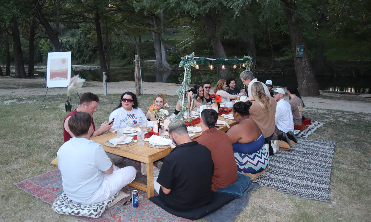 After three and a half years of being a fully remote workforce, Moxy Management decided it was time to take things offline and bring the entire company together to meet in person for a luxury glamping retreat. So, they packed up their laptops, put on their best summer camp outfits, and headed for the Texas Hill Country for a team-building event that’s still the talk of the team weeks later, thanks to BoomPop’s retreat planning expertise!